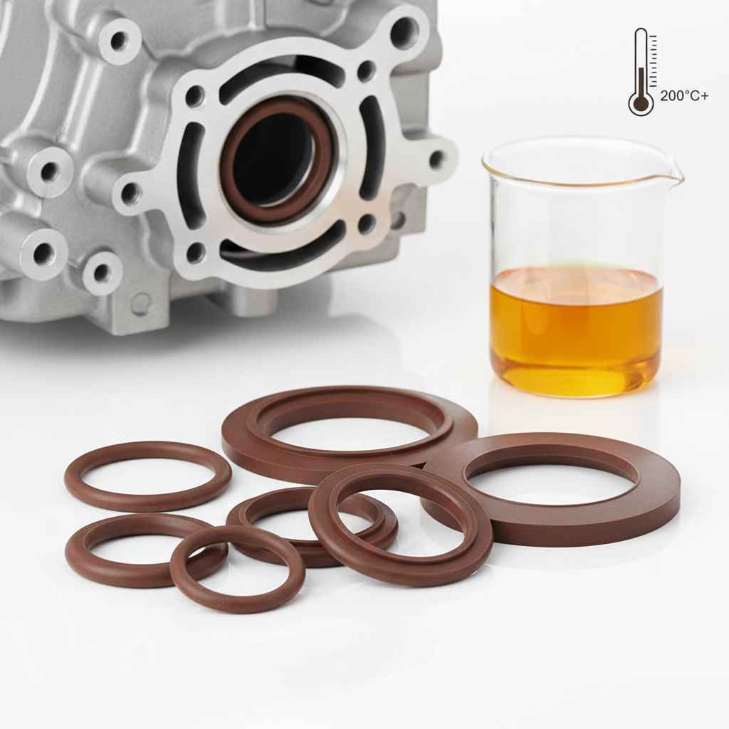 We manufacture custom-molded FKM rubber seals including O-rings , valve stem seals , crankshaft seals , camshaft seals , fuel injector O-rings , and turbocharger gaskets widely used in engine sealing systems , fuel systems , turbocharger applications , hydraulic components , and other high-performance automotive assemblies.